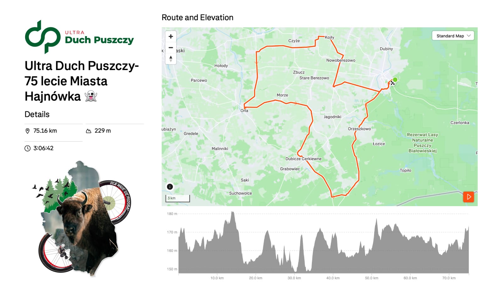 To jedna z najbardziej wyjątkowych tras Ultra Ducha – esencja Podlasia, zamknięta w 276 kilometrach asfaltu, emocji i dzikiej przyrody. Trasa prowadzi przez dwa największe zielone serca regionu –Puszczę Białowieską i Puszczę Knyszyńską, tworząc duchową pętlę, której nie da się zapomnieć.